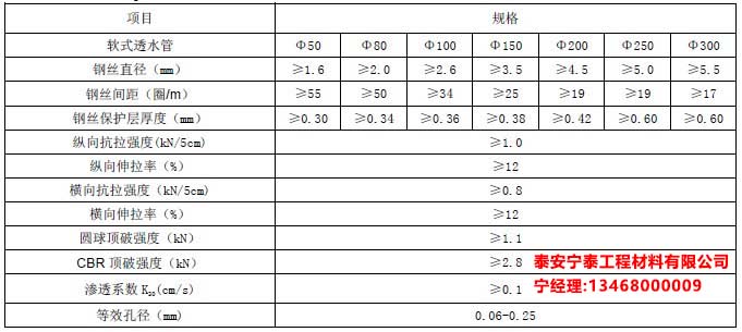 橡膠筋使管壁被覆層與彈簧鋼圈管體成為有機一體,具有很好的透水功能,滲透水順利滲入管內(nèi),而泥砂雜質(zhì)被阻擋在管外,從而達到透水、過濾、排水一氣呵成之目的。