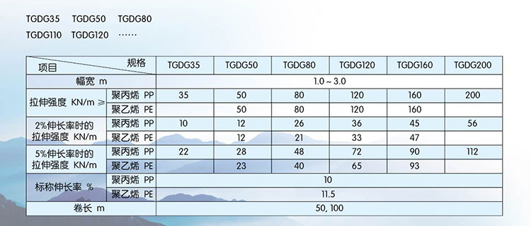 該產品適用于修建公路、鐵路以及江河湖海岸邊的加筋檔土墻、堤壩、橋面、陡坡及土工格室等工程。其作用是可提土墻或堤壩的承載力,延長使用壽命,減少占地面積,縮短工期,降低造價,減小維修費用。